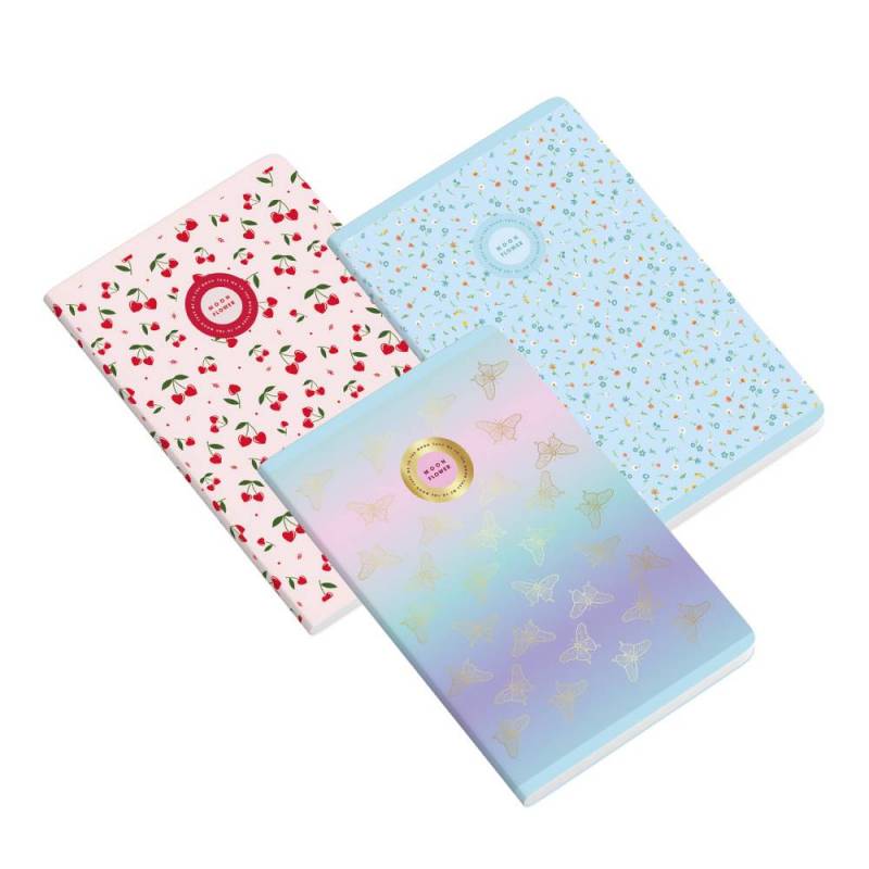 Moonflower Cherry kollekció A4-es méretű vonalas füzet cseresznyés/arany színű lepkés/apró virágmintás borítóval